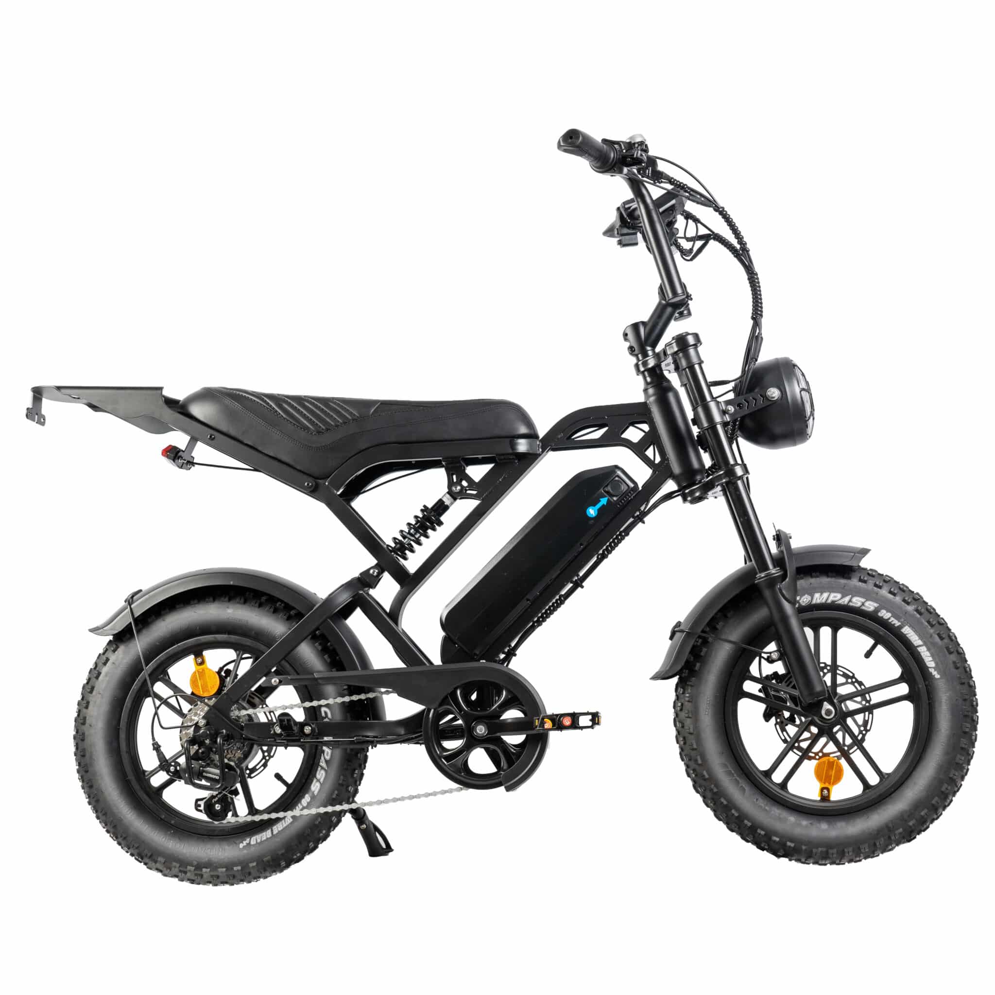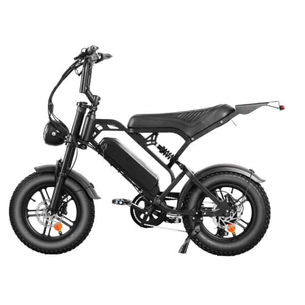 Dankzij de 16-inch fatbike banden, hydraulische schijfremmen en middenvering rijdt de V20 MINI comfortabel en stabiel, zowel op straat als op licht terrein.